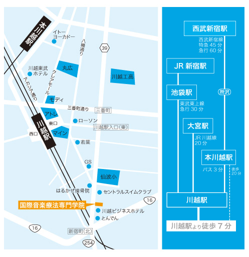 西武新宿線「本川越」駅 – 川越バス3分(本川越より徒歩約20分)